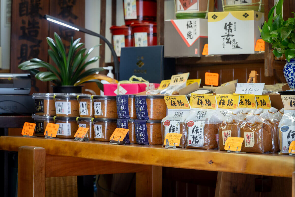 武田さん「銘醸の他、店頭に並ぶ味噌はどれも大量生産ができないものばかり。なかでも私のおすすめは『玄米味噌』と『華城下』ですね。どちらも上田のお米と大豆を使ったこだわりのお味噌です」