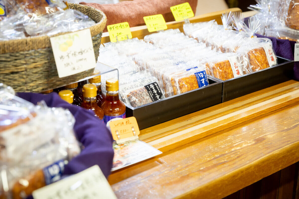 武田さん「一枚ずつ手作業で仕上げるタイプのおせんべいも人気で、定番の『銘醸』のほか、ゆずや唐辛子など味のバリエーションが楽しめます。お味噌の旨みを活かした少し甘めの仕上がりで、お土産やプレゼントにもぴったり。リピートしてくださる方も多くいらっしゃいます」
